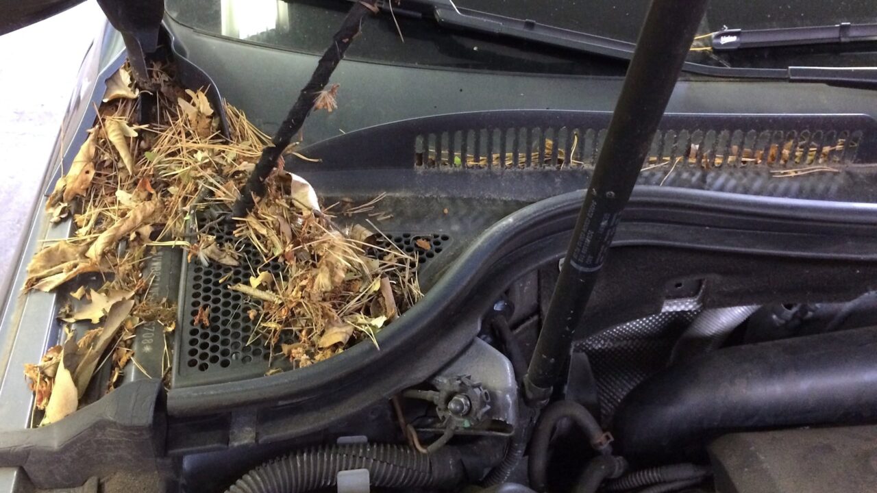 Leaves can clog drainage channels (like sunroof drains, windshield cowl), vents, filters. That causes water pooling, odors, even functional damage (e.g. water leaks, HVAC issues).
